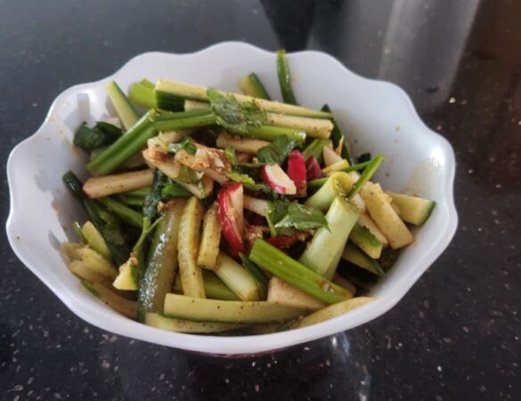 Ингредиенты: Огурцы — 2–3 шт. Редиска — 6–8 шт. Кинза — небольшой пучок Чеснок — 3–4 зубчика Лук — ½ головки Соль — по вкусу Паприка — ½ ч. л. Черный перец — ¼ ч. л. Соевый соус — 1–2 ст. л. Растительное масло —…