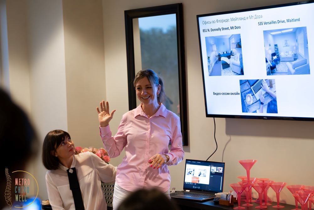 Тема стресса очень актуальна в наши дни. Тем ценнее были сообщения специалистов центра Metro ChiroWell Элины Нубарян и хиропрактора Джона Стауба о способах снятия стресса и напряжения в теле человека, а также рассказ о том, какие инструменты и методы они применяют: от хиропрактики / мануальной терапии, подкрепляющей осанку и поток энергии, до подпитки минералами, важными для каждой клеточки нашего тела. Так, как мы уже писали в одном из номеров журнала Florida & Us, в Metro ChiroWell создан собственный трансдермальный хлорид магния Magnesium Oil Spray, который хорошо усваивается и отлично справляется с задачей снятия мышечных спазмов и расслабления пациентов медцентра.