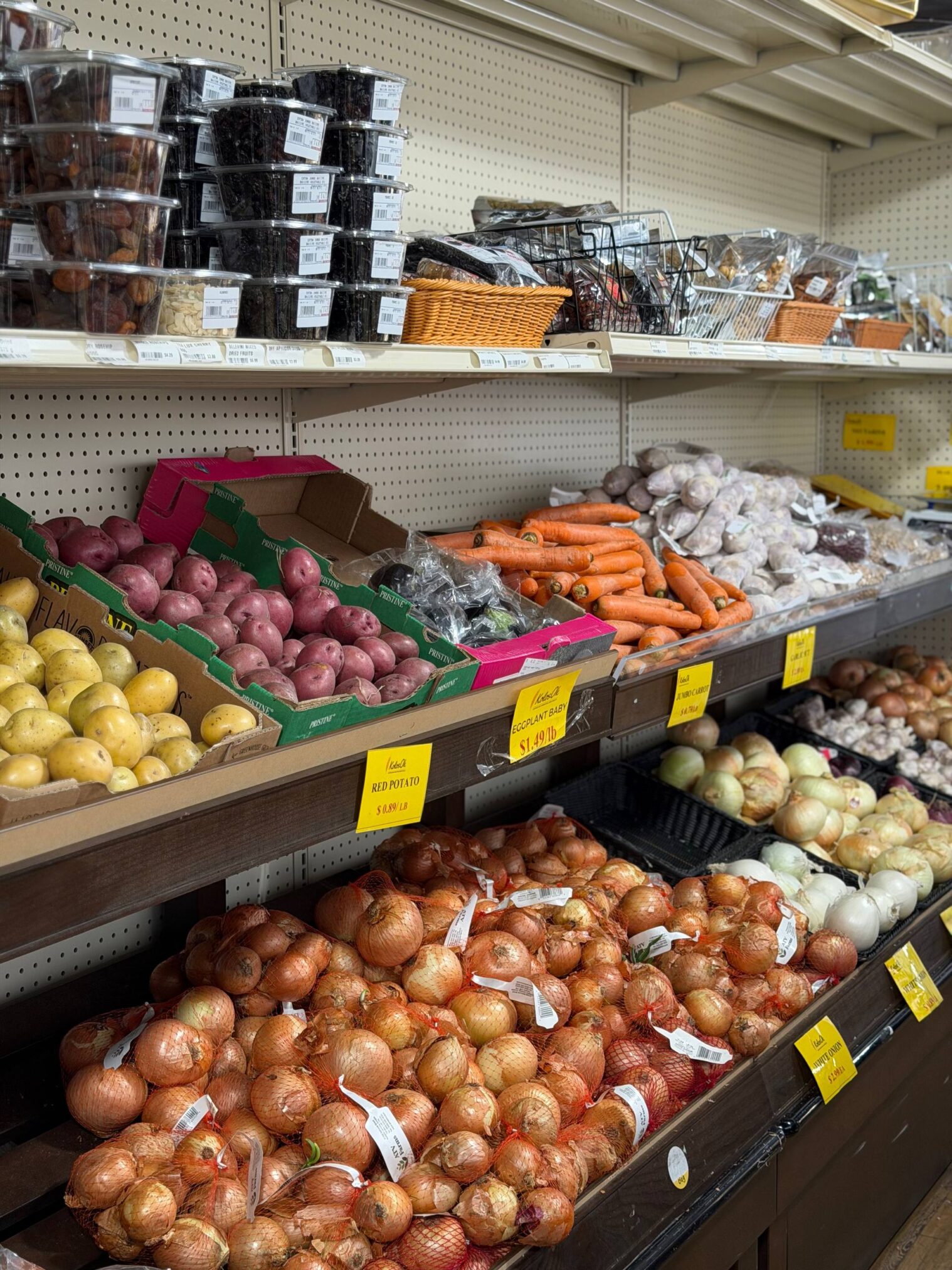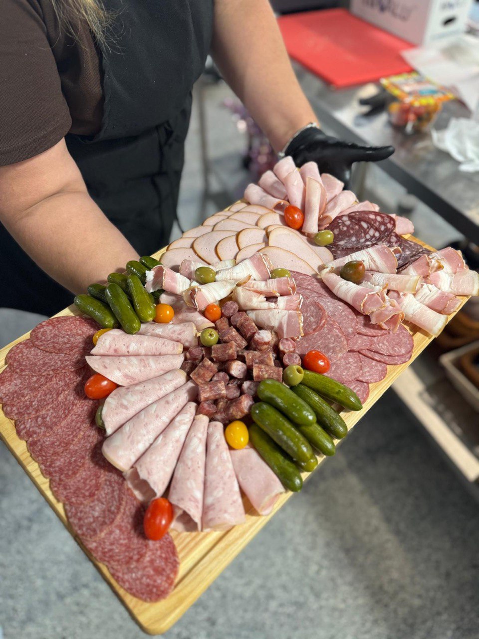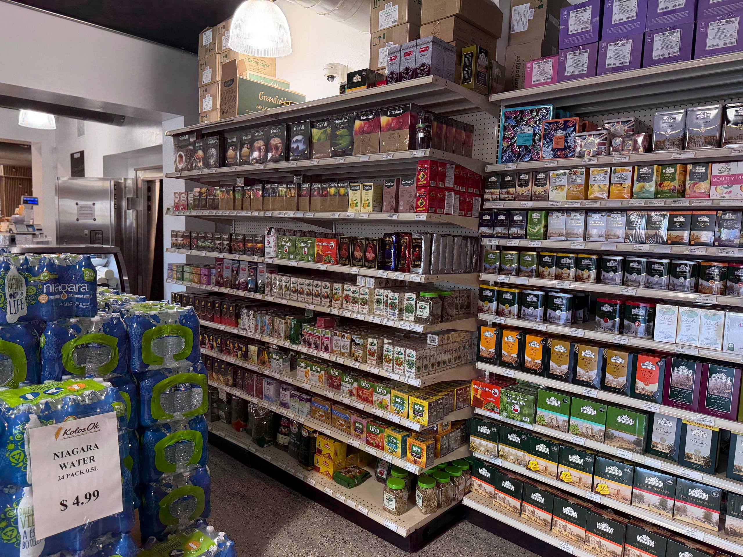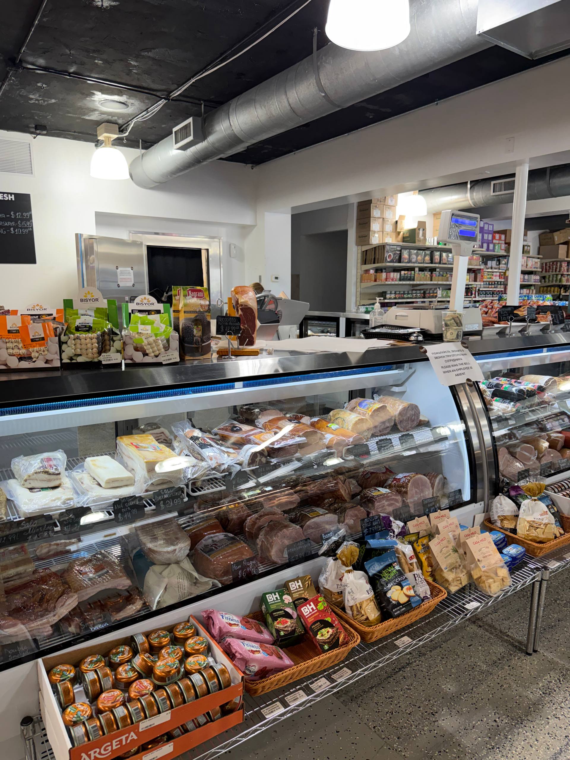 Ассортимент впечатляет. Свежие овощи и фрукты, фермерские молочные продукты, свежее мясо и колбасные изделия, сыры разных стран, рыбные деликатесы, популярные грузинские вина, литовские конфеты, знаменитая докторская колбаса, российский сыр и не только, красная икра, различные сорта чая и пива, крупы, мучные изделия,