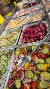 приправы, соленья, замороженные вареники, пельмени и другие полуфабрикаты. И конечно же, кулинария — то, что заставляет задерживаться у витрины: салаты, горячие блюда, аппетитные закуски, домашняя выпечка и потрясающие десерты. После 18:00 действует скидка 25 % на блюда горячей и холодной станции.