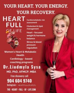 Liudmyla Sysa, MD, PhD, is a European-trained cardiologist and certified health coach with over 20 years of clinical and research experience. She is the founder of Heart Full of Life, an online cardiac-recovery program that helps patients rebuild heart health after major cardiovascular events. Her work bridges European recovery models with U.S. practice to improve long-term outcomes beyond the hospital phase.