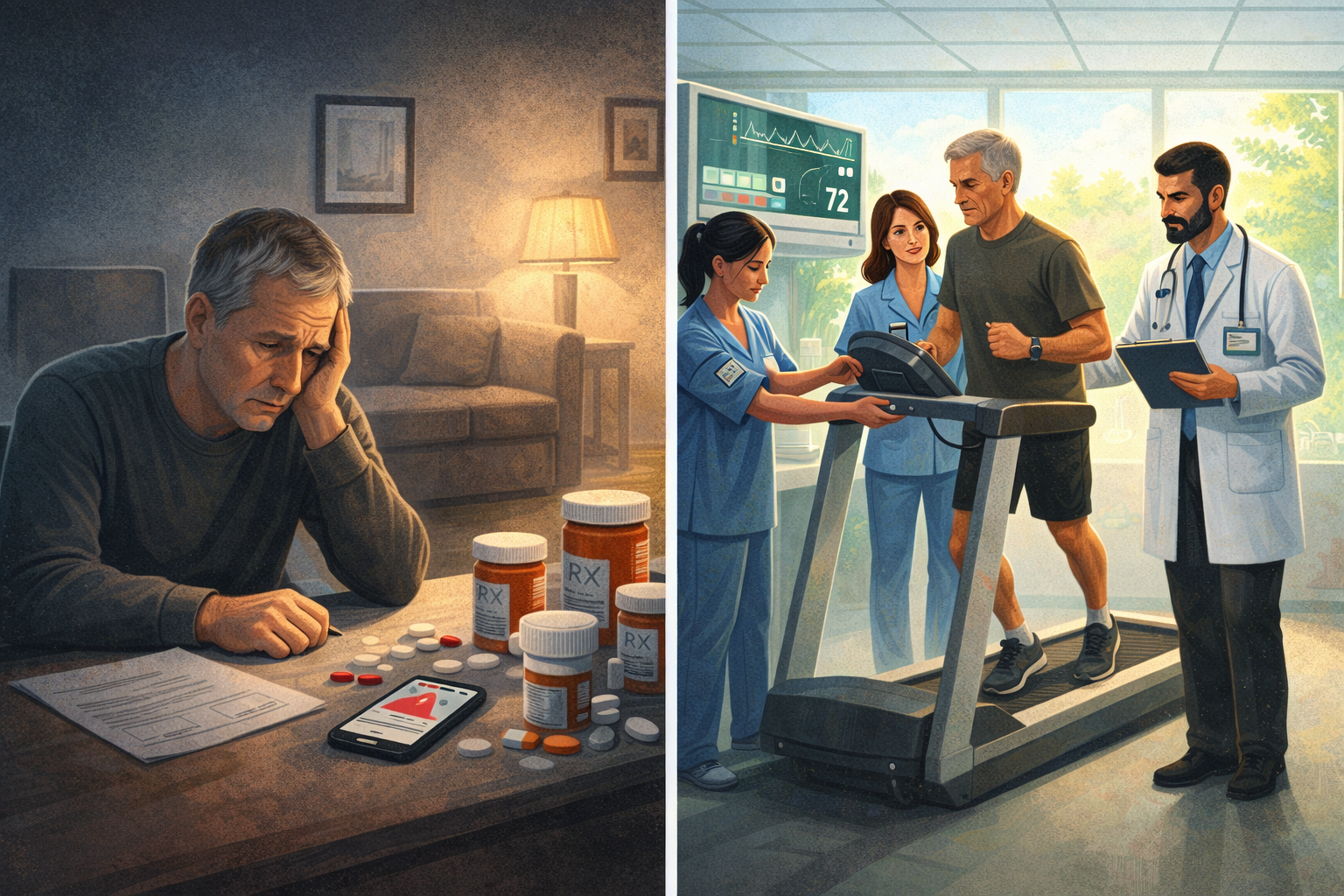 Procedural statistics reflect this difference. In the U.S., stents are placed two to three times more often than in many European countries. While many interventions are life-saving, research shows that some repeat procedures could be avoided through structured follow-up and aggressive risk-factor management. Financial incentives favor interventions, not months of guided recovery — leading to excellent acute outcomes but poor continuity.